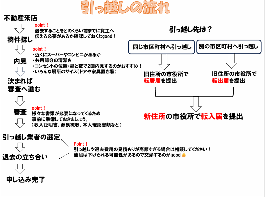 まずは引っ越しの大まかな流れからご説明いたします🏠